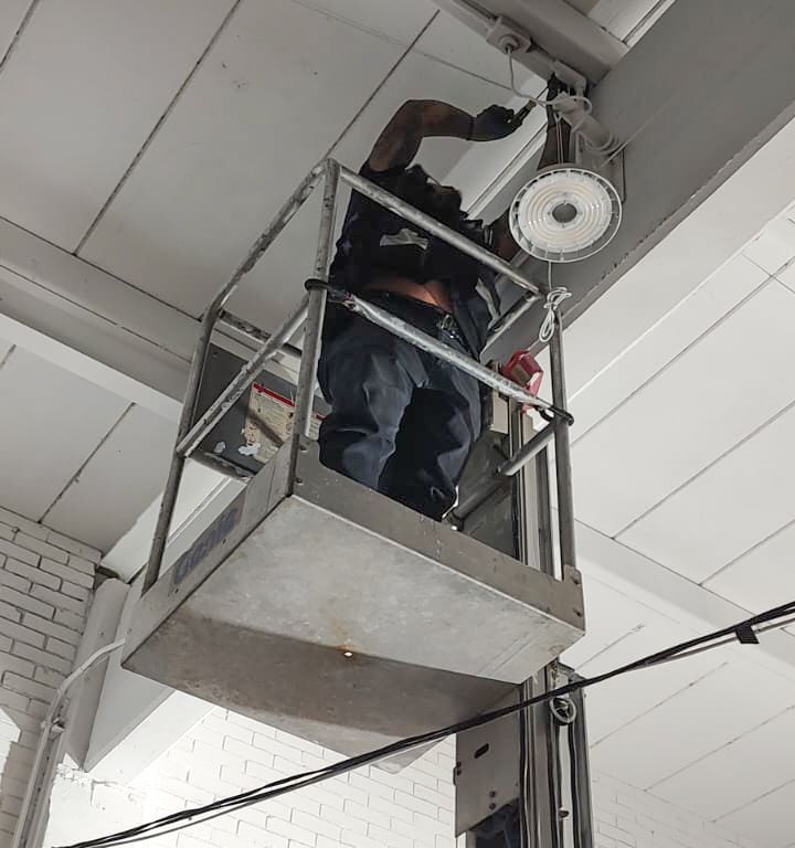 Durante el fin de semana en horario nocturno, el personal trabajó en la instalación de 10 lámparas de techo en el pasillo del área de carnicerías, así como otras cuatro luminarias adicionales, con estas acciones las áreas en las que se intervino cuentan ahora ya con un alumbrado adecuado conectado a una pastilla de seguridad en el centro de carga, garantizando así un sistema eficiente y seguro de iluminación.
