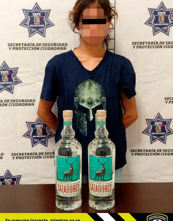 Al ubicar a la señalada, se le encontraron dos botellas de tequila de la marca Cazadores, por lo que a petición de la parte afectada se procedió con la detención de Ariana Lizbeth “N” de 20 años.