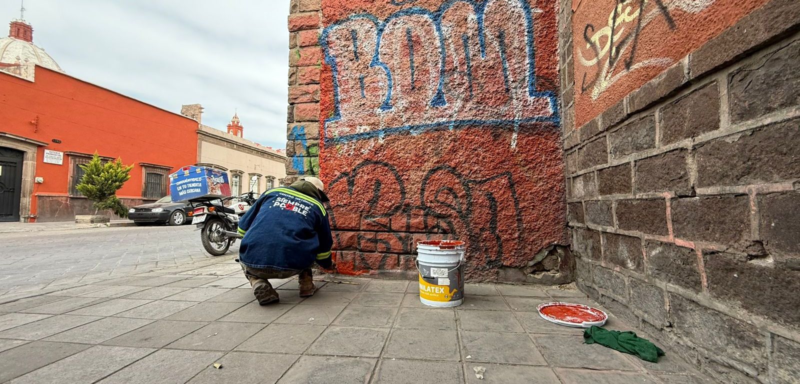 Las acciones de retiro de graffiti continuarán de manera permanente y que no se afecte la imagen del Centro Histórico tanto en casas habitación, como en comercios de este lugar.
