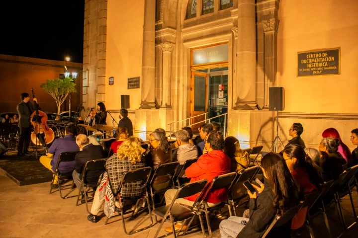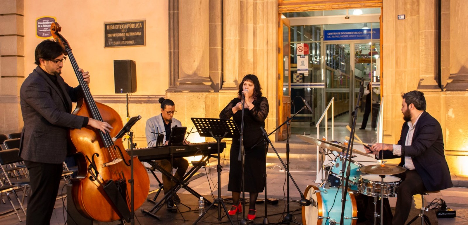 La tarde de este miércoles 29 de enero, la explanada de la Biblioteca Pública Universitaria (BPU) se convirtió en un escenario musical con la presentación del grupo Du Trio, que en colaboración con Melody Navelo, deleitó a las y los asistentes a este recital ofrecido a las doctoras Estela Morales e Isabel Monroy, quienes serán galardonadas con el Doctorado Honoris Causa por la Universidad Autónoma de San Luis Potosí (UASLP).