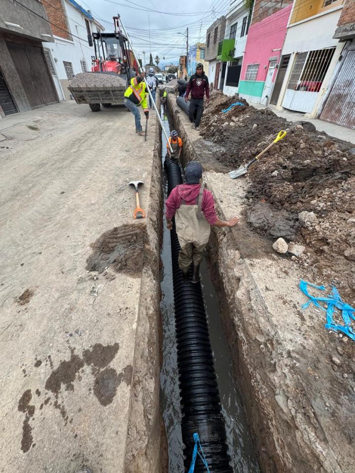 Actualmente, se trabaja en el segundo tramo, ubicado en Prolongación Mariano Hidalgo, entre Privada Centenario y Juan del Jarro. Esta obra lleva un 60% de avance y contempla la reposición de 98 metros de tubería PEAD de 12 pulgadas, con una inversión de 350,000 pesos.