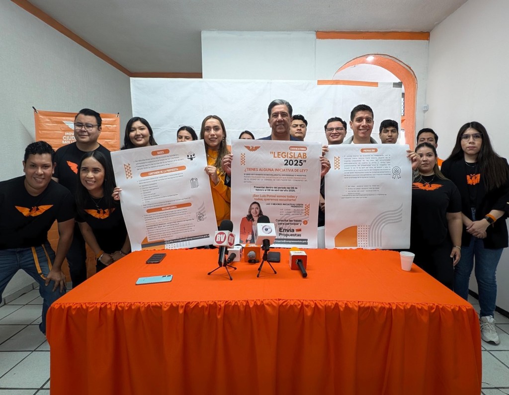 Movimiento Ciudadano presentó hoy en rueda de prensa la convocatoria LEGISLAB 2025, un innovador laboratorio legislativo dirigido a estudiantes de bachillerato, universidad y maestría en el estado de San Luis Potosí. El evento contó con la presencia del Diputado Marco Gama Basarte, Coordinador Estatal de Movimiento Ciudadano; Isa Lastras, Delegada de Jóvenes en Movimiento San Luis Potosí; Daniel Rivera, Secretario de Acuerdos, así como con la participación de la Fuerza Joven de Movimiento Ciudadano.