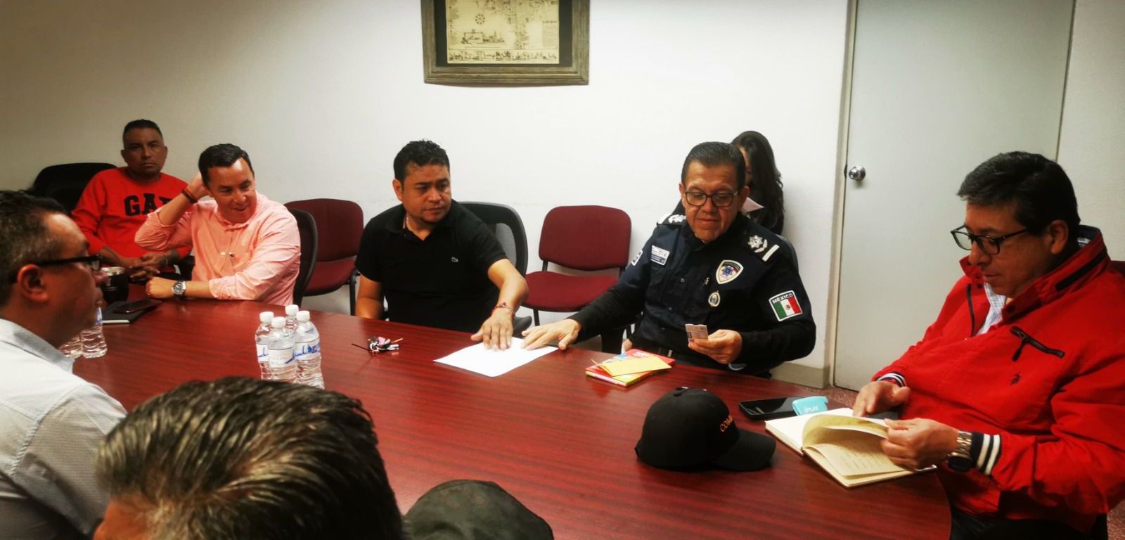 En la reunión estuvieron presentes representantes y dueños de grupos de sonido, así como el Secretario de Seguridad y Protección Ciudadana, Juan Antonio Villa Gutiérrez; el Secretario de Bienestar, Edmundo Torrescano Medina; el Director de Comercio; Ángel de la Vega Pineda; el Director de Gestión Ecológica, Jaime Mendieta Rivera y Aureliano Gama Basarte, Jefe de la Oficina de la Secretaría General del Ayuntamiento Capitalino.
