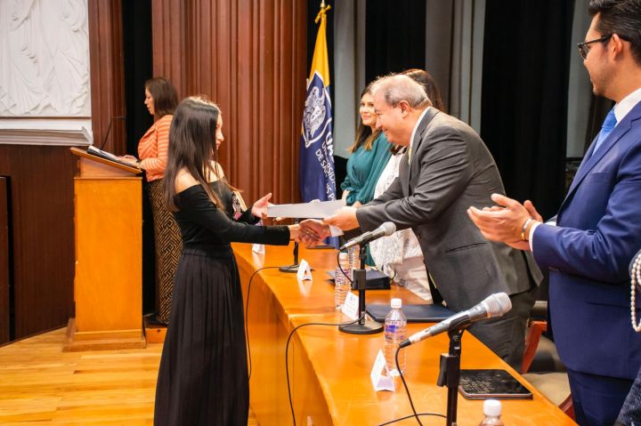 La titular de la Secretaría de Servicios Escolares, Dra. Claudia Elena González Acevedo, dio a conocer que, desde el año 2020, los 14 alumnos que iniciaron en el programa han obtenido un promedio sobresaliente de 8, que no solo habla de su inteligencia y capacidad, sino también de su disciplina, perseverancia y pasión por aprender. “Este esfuerzo les ha permitido acceder a una beca que ha facilitado continuar sus estudios y aminorar el aspecto financiero, lo que representa una gran herramienta en su trayectoria académica”, dijo.
