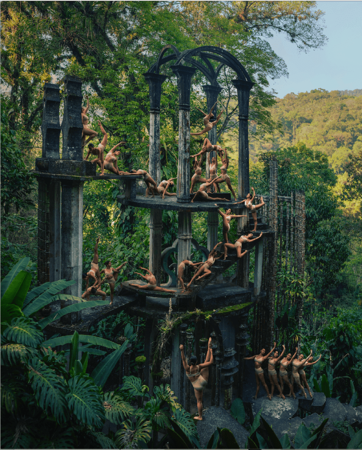 El reconocimiento otorgado al fotógrafo estadounidense Rob Woodcox y la galería madrileña Arma, fue por una imagen tomada en el Jardín Escultórico Edward James, Las Pozas en donde se aprecian 25 bailarinas de la escuela Körper Dance posando sobre el palacio de bambú.