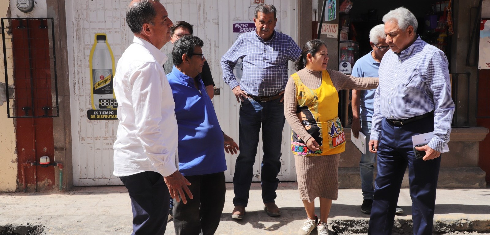 SLP.- En compañía de vecinos de la calle Lerdo de Tejada, el director general de Interapas Jorge Daniel Hernández Delgadillo, realizó una visita de supervisión a los trabajos de rehabilitación sanitaria que se realiza en esa conocida arteria en el Centro Histórico de la Capital.