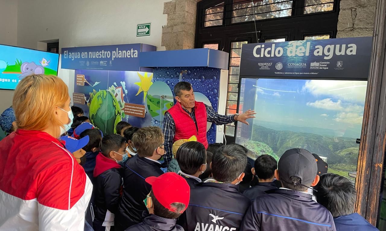 Entre la asistencia en el CIEA sobresalen las alumnas y alumnos, pero también docentes del colegio Avance del 2o. grado de primaria, quienes con atención conocieron qué es la Huella Hídrica, pero sobre todo, se comprometieron a utilizar con mayor conciencia el agua potable, a la par de reafirmar los conocimientos compartidos en el área de Cultura del Agua.