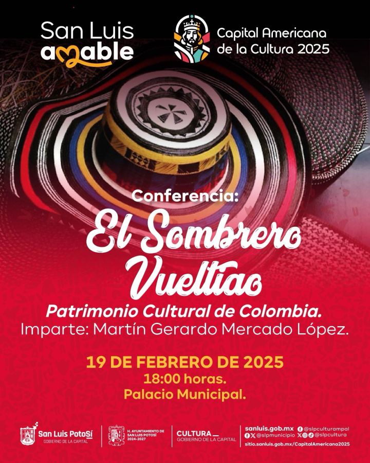 18:00 horas. Conferencia: “El sombrero vueltiao, patrimonio cultural de Colombia”.