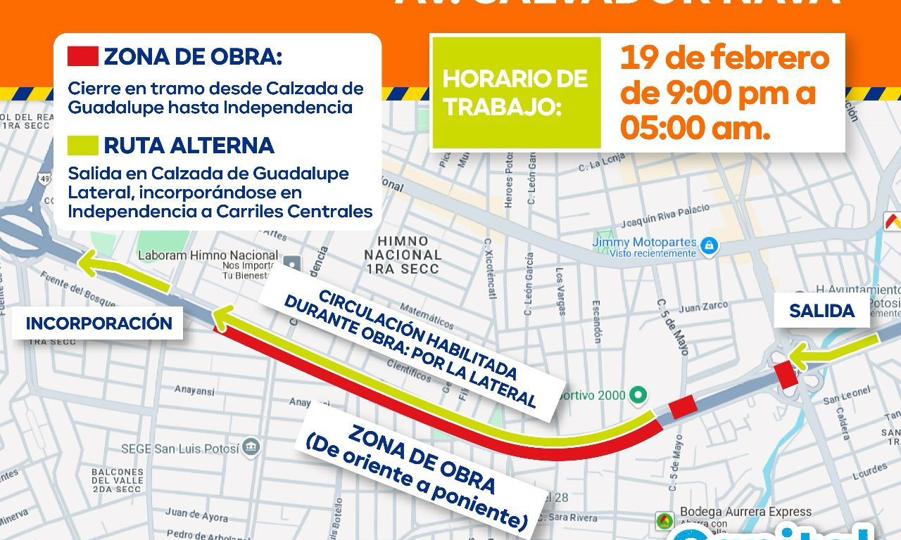 Para la correcta ejecución de la obra, la noche de este miércoles se realizan trabajos de fresado y colocación de carpeta asfáltica, por lo que se dispondrán de cierres a la vialidad en el tramo que va de la Calzada de Guadalupe a la calle de Independencia.