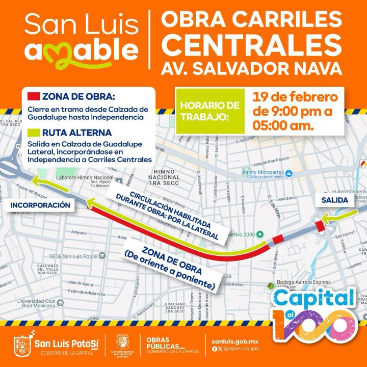 Como parte del Programa Vialidades Potosinas, el Gobierno Municipal de San Luis Potosí continúa con los trabajos de repavimentación en carriles centrales de Salvador Nava, con el objetivo de mejorar la infraestructura vial y garantizar una circulación más segura y eficiente para los potosinos.