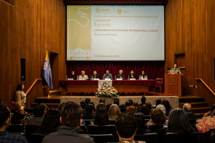 Este jueves 20 de febrero se llevó a cabo la ceremonia de egreso de la 12ª Generación de la Licenciatura en Ciencias Ambientales y Salud de la Facultad de Medicina de la Universidad Autónoma de San Luis Potosí (UASLP), en la que se celebró el esfuerzo y la dedicación de los estudiantes que culminan su etapa académica para convertirse en agentes de cambio en el cuidado del medio ambiente y la salud pública.