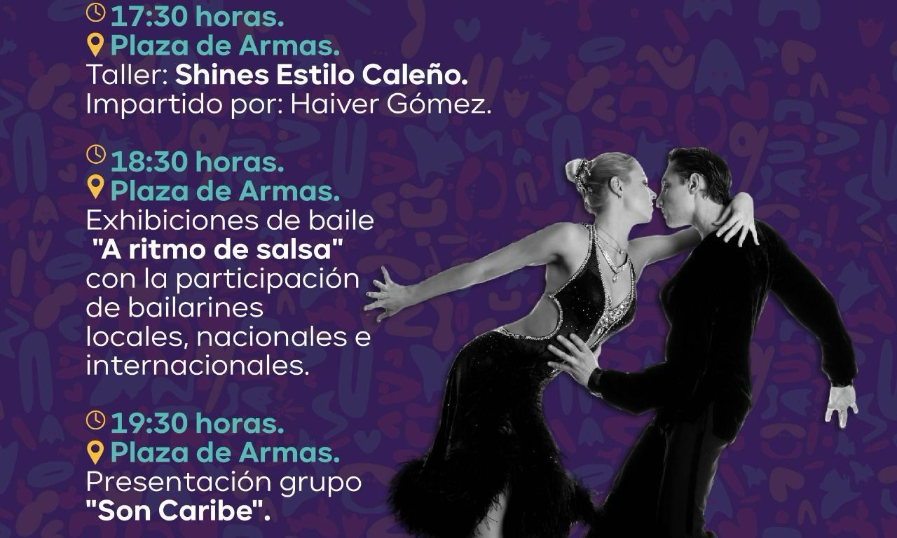 El baile lucirá en todo su esplendor en la Plaza de Armas, con un taller para principiantes y con las agrupaciones Son Caribe y Kalavera Orquesta.
