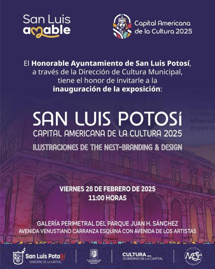 El Gobierno de la Capital invita a la inauguración de la exposición “San Luis Potosí. Capital Americana de la Cultura 2025”, este próximo viernes 28 de febrero a las 11 horas en la galería Perimetral del Parque Juan H. Sánchez.