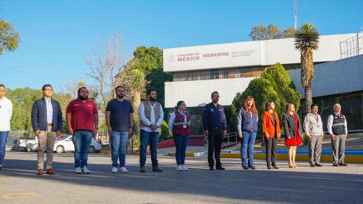 Con orgullo y patriotismo, el titular Memo Morales efectuó el izamiento de Bandera donde derechohabientes de los Programas para el Bienestar, servidores de la nación y de la educación, así como personal administrativo y operativo rindieron honores al lábaro patrio y entonaron el Himno Nacional Mexicano.