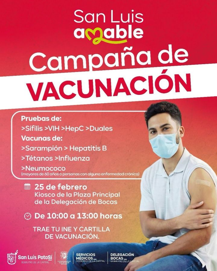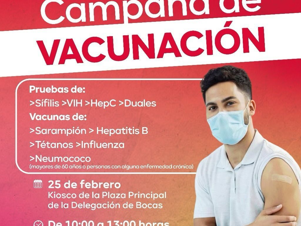 Para preservar la salud pública en todo el Municipio, el Gobierno de la Capital lleva a cabo campañas frecuentes de vacunación, por lo que este martes 24 de febrero, le toca a quienes habitan en la delegación de Bocas completar su cuadro de vacunas.