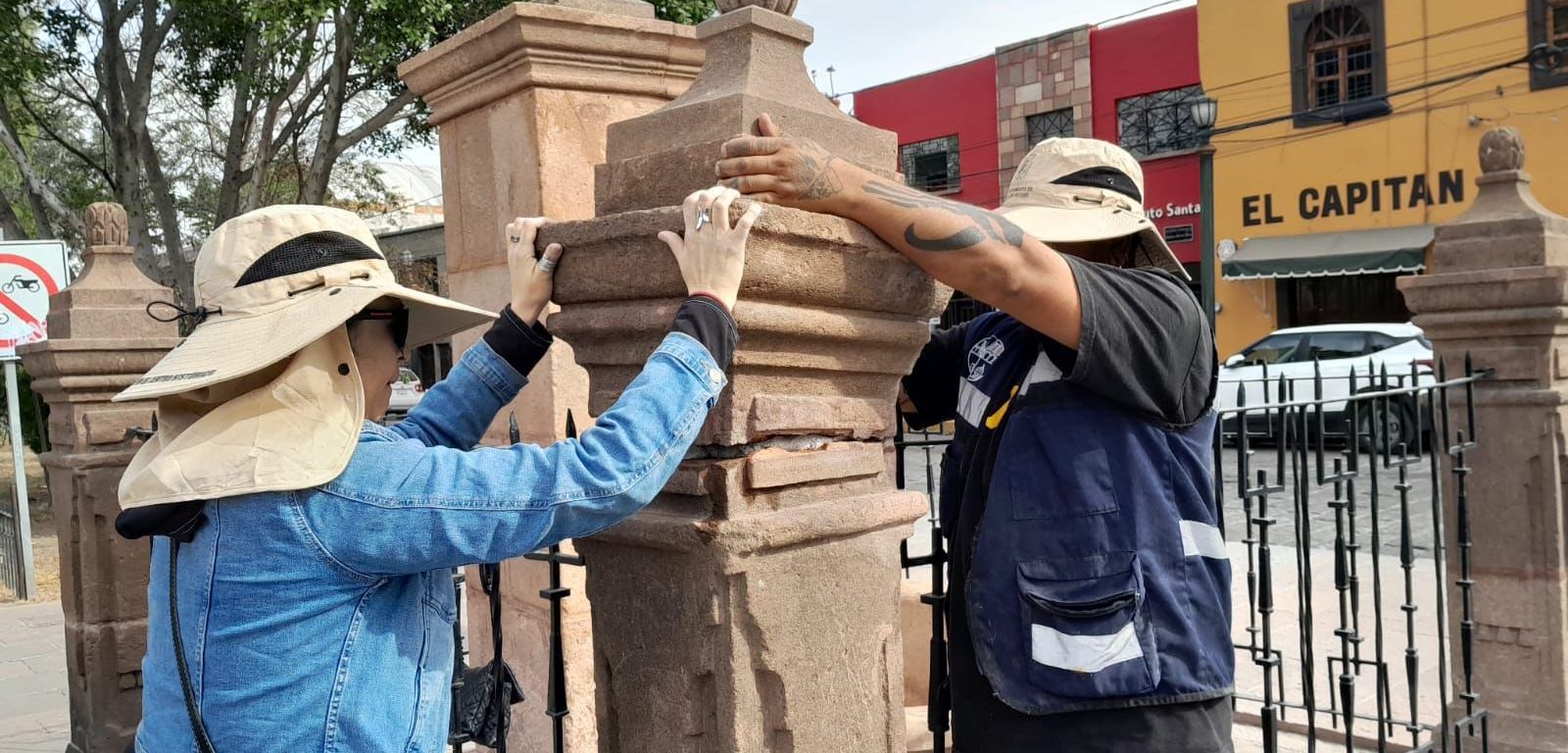 La Unidad de Gestión del Centro Histórico (UGCH) llevó a cabo la restauración de la zona perimetral de la Caja de Agua “La Conchita”, con el objetivo de resarcir los daños ocasionados por actos de vandalismo que afectaron su estructura. Durante la intervención, se atendieron dos puntos clave: la parte superior de una columna, que había sido desplazada, y la base de otra columna, que presentó desprendimientos de resane aplicados en una intervención pasada.