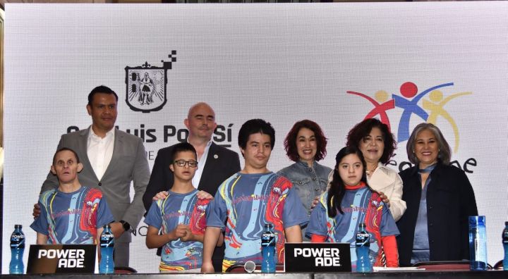 El acto concluyó con la fotografía en la que los miembros del presídium y los niños, así como jóvenes de Intégrame Down, quienes mostraron la imagen del evento para este 2025.
