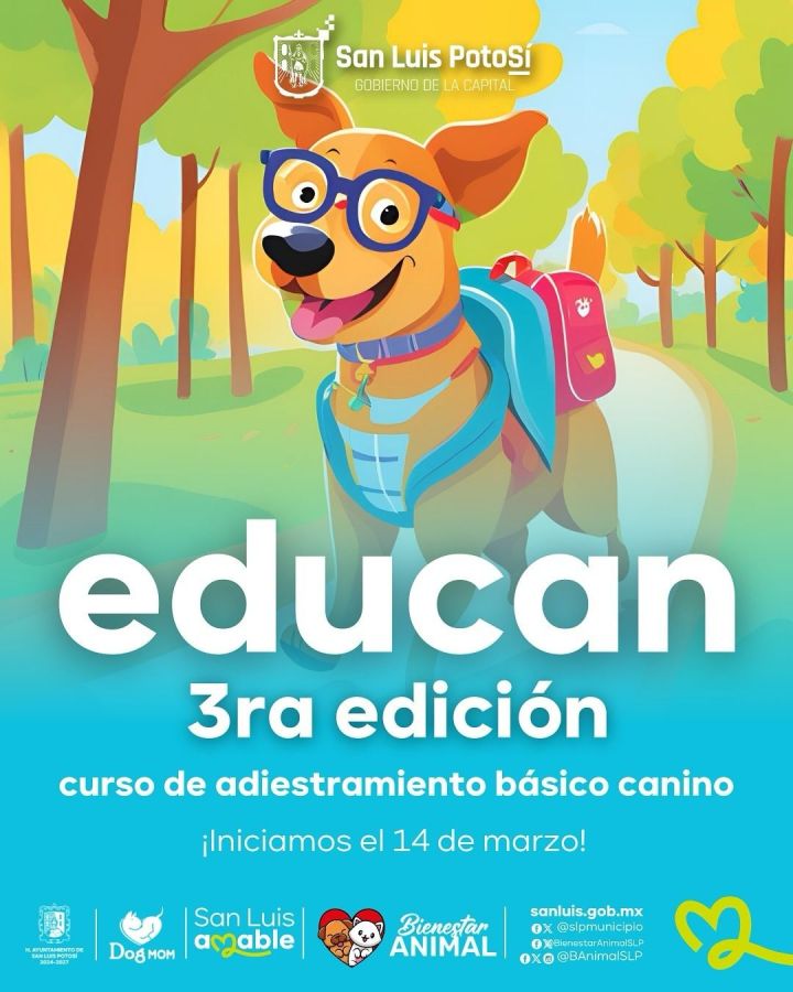 De ahí que las inscripciones ya están abiertas y cerrarán el viernes 07 de marzo y las personas interesadas pueden llamar al teléfono: 4448-240071, de 8 de la mañana a 3 de la tarde. “Si tienes un perrito mayor de cuatro meses y quieres fortalecer su educación y convivencia, aprovecha esta oportunidad con las sesiones gratuitas de adiestramiento, donde aprenderás técnicas básicas para mejorar la comunicación y el comportamiento de tu lomito. De esta manera, apoyamos las acciones emprendidas por el Alcalde Enrique Galindo, para hacer de San Luis una ciudad más amigable con los animales”, puntualizó Vázquez Pérez.