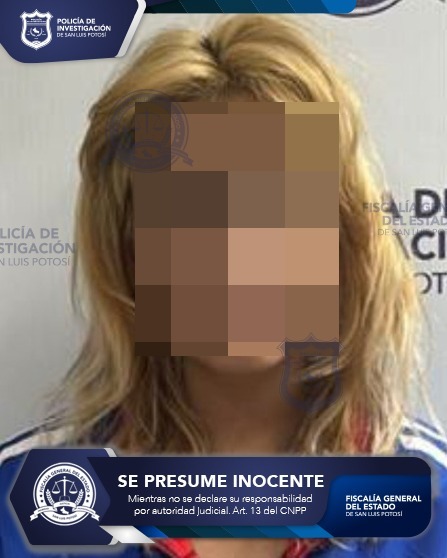 Su captura se efectuó en la zona centro de la capital potosina, lugar en donde fue informada del motivo de su aprehensión, así como de los derechos que la asisten, para posteriormente llevarla a una revisión de su estado de salud.