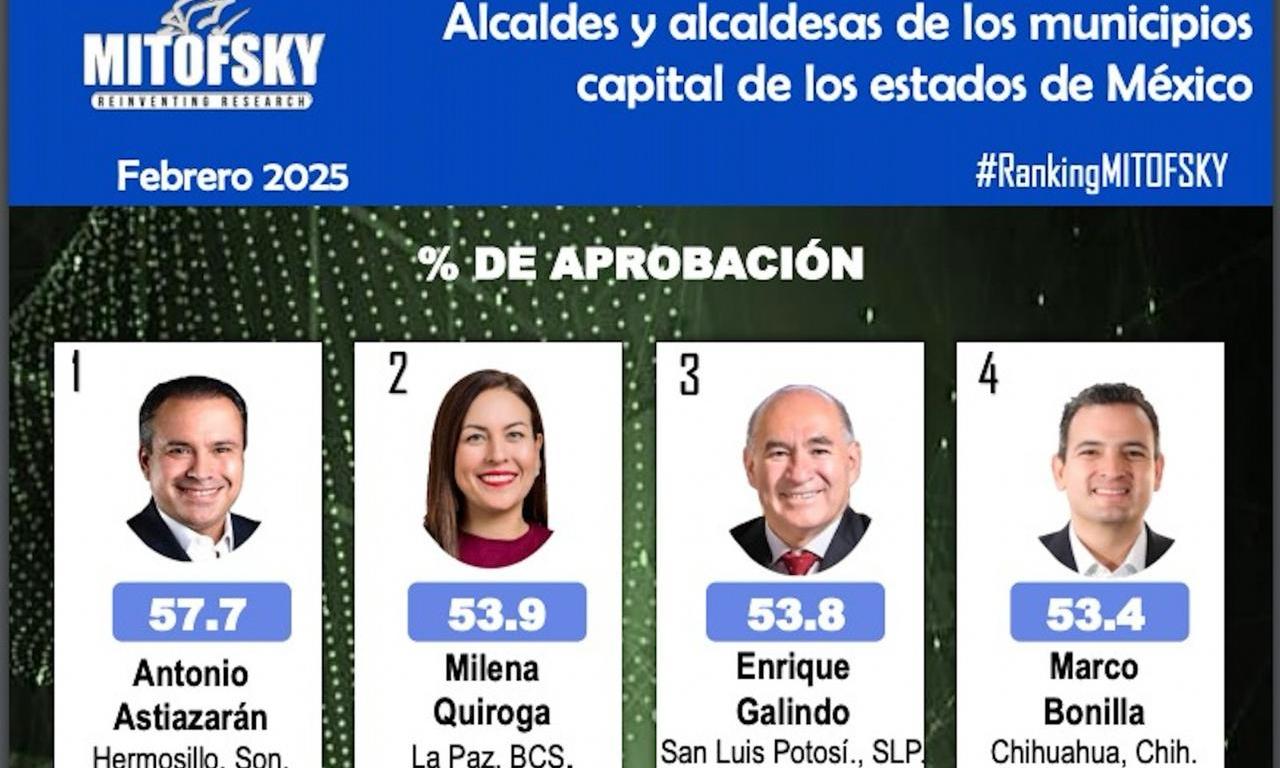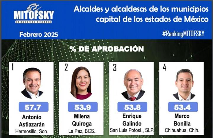 Los resultados dados a conocer por la empresa Consulta Mitofsky, una de las más reconocidas del país en estudios de opinión, ubican a Enrique Galindo Ceballos, como uno de los presidentes municipales de ciudades capitales con mayores niveles de aprobación, al ubicarlo en tercer lugar nacional, en la encuesta correspondiente a febrero de este año.