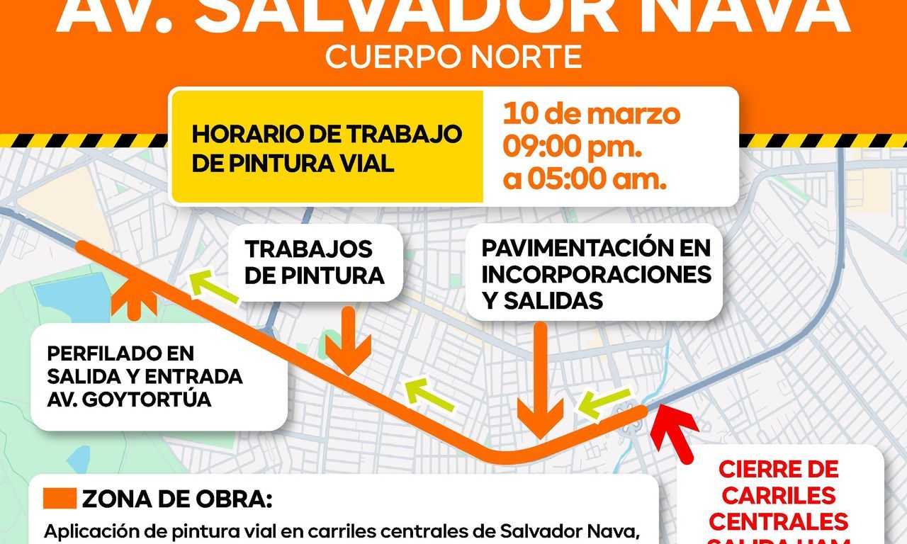 También se intervendrán los puntos de entrada y salida de la avenida Jesús Goytortúa, por lo que se recomienda a los automovilistas circular con precaución y tomar rutas alternas.