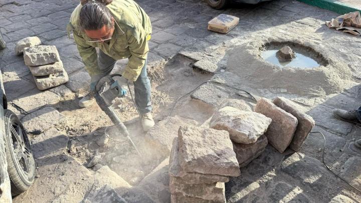 La Unidad de Gestión del Centro Histórico realiza trabajos de bacheo y mantenimiento, para brindar un entorno seguro y atractivo para visitantes y habitantes.