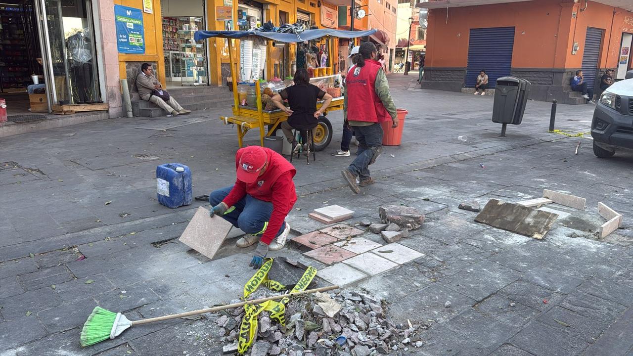 Además de la intervención en la calle Juan Sarabia, la Cuadrilla de Respuesta Inmediata continuó con los trabajos en otras vialidades del Centro Histórico, como la calle de Bolívar en su cruce con Reforma, donde se rehabilitó la superficie con adoquines. También se realizaron labores de bacheo en Miguel Barragán y su intersección con Calzada de Guadalupe, así como en Morelos, tanto en su cruce con Miguel Barragán como en otro punto de esta vialidad.