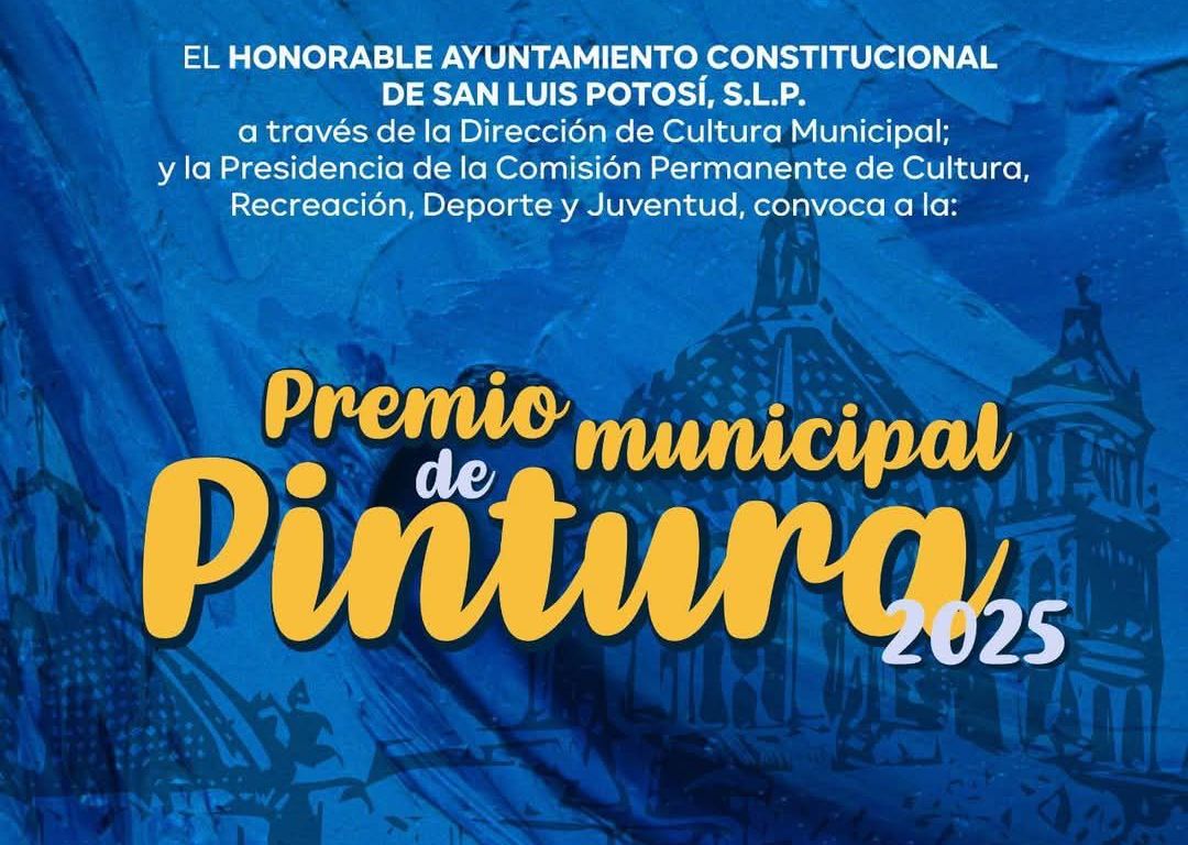 El Ayuntamiento de San Luis Potosí dio a conocer que ya están abiertas las bases para participar en el Premio Municipal de Pintura 2025, con el que se busca contribuir al fortalecimiento de la promoción y difusión de la diversidad de las expresiones culturales y artísticas de la Capital, además de reconocer y fomentar la producción pictórica de artistas, creadoras y creadores locales, nacionales y del extranjero.