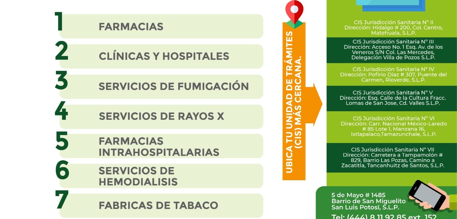 Para tramitar una Licencia Sanitaria de Actos Quirúrgicos u Obstétricos, se debe acudir a los Centros Integrales de Servicios ubicados para el interior del estado en las Jurisdicciones Sanitarias y para la capital potosina, Soledad de Graciano Sánchez y Villa de Pozos el Centro Integral de Servicios se encuentra al interior de las instalaciones de COEPRIS en la calle 05 de Mayo #1485 Barrio de San Miguelito.