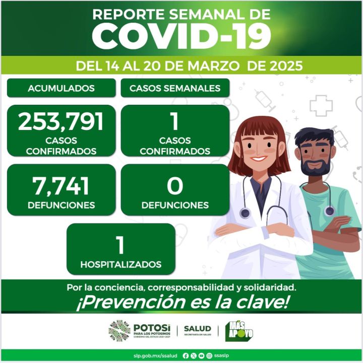 La persona contagiada del virus, no cuenta con esquema de vacunación y no presenta comorbilidades, se trata de una niña de un año de edad de la capital potosina. En esta semana no se reportaron decesos por Covid, por lo que la cifra de muertes se mantiene en 7 mil 741 en el Estado.