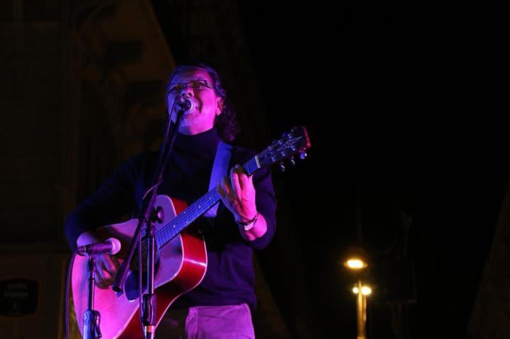 Al exterior de Palacio Municipal, se dio un frente a frente de guitarras entre cantautores, de Chile la autora Patricia Durán, quien cantó música de autores chilenos como Violeta Parra y Mon Laferte.