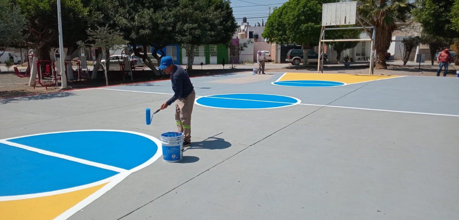 En respuesta a solicitudes de los vecinos, trabajadores del Ayuntamiento pintan y acondicionan las canchas de Villa Mares II, en Villas del Sauzalito