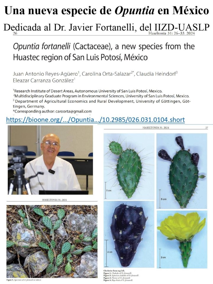 La Universidad Autónoma de San Luis Potosí (UASLP) registró en la lista mundial de flora (WFO) una nueva especie de nopal, denominada «Opuntia Fortanelli» en honor al botánico universitario doctor Javier Fortanelli Martínez, hallazgo realizado por el doctor Juan Antonio Reyes Agüero, director del Jardín Botánico «El Izotal».