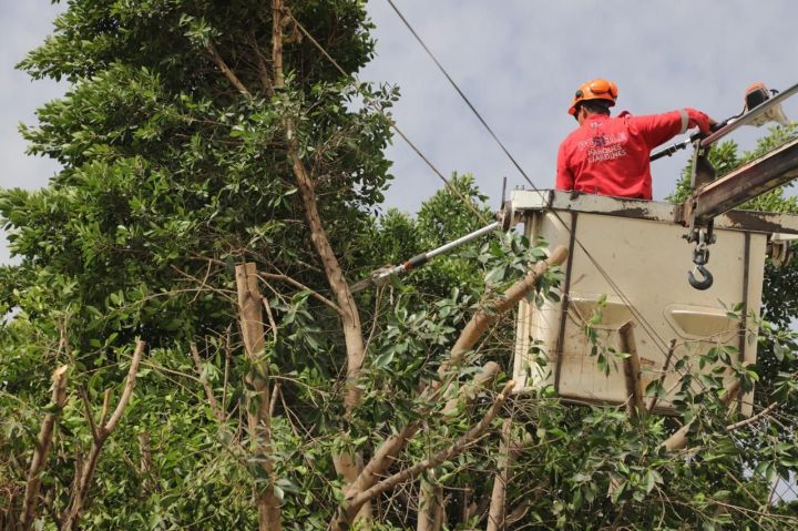 En este sentido, personal de la Coordinación de Parques y Jardines, con el uso de una grúa y equipo especial, atendió una solicitud para podar los árboles en la Avenida Montes Kelut, que obstruían el alumbrado y limitaban la visibilidad a los conductores, además de poner en riesgo el cableado de energía eléctrica.