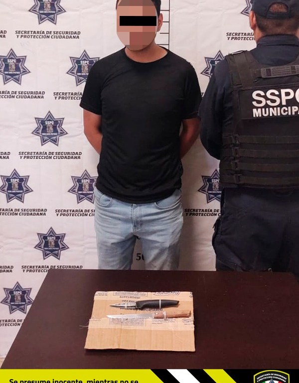 Gracias a la rápida actuación de oficiales de Guardia Municipal de la Secretaría de Seguridad y Protección Ciudadana (SSPC) se llevó a cabo la detención de una persona de sexo masculino que fue señalado por su pareja de violencia familiar. El hombre amenazó a su pareja con un arma blanca y al momento de la detención fue despojado de dos cuchillos.