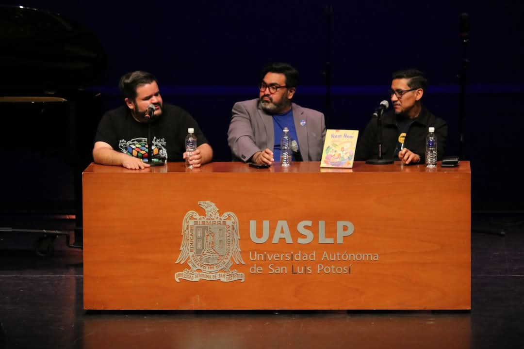 Los asistentes a la 49 Feria Nacional del Libro de la Universidad Autónoma de San Luis Potosí (UASLP) fueron testigos de un viaje para explorar el mundo de los alimentos desde una perspectiva científica, en la presentación del libro “Ñam ñam ¿qué ondilla con la comida?”, a cargo de los científicos y tiktokers Rafa Carbajal y Lucio Rodríguez “Dr. Luc”.