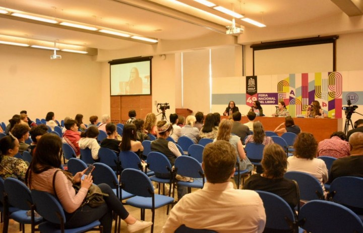En el marco de la 49 Feria Nacional del Libro de la Universidad Autónoma de San Luis Potosí (UASLP), se llevó a cabo la charla “100 años de Rosario Castellanos”, un emotivo homenaje a la escritora chiapaneca a cargo de tres autoras e investigadoras profundamente admiradoras de su obra, Sara Uribe, Socorro Venegas y Julia Santibáñez.