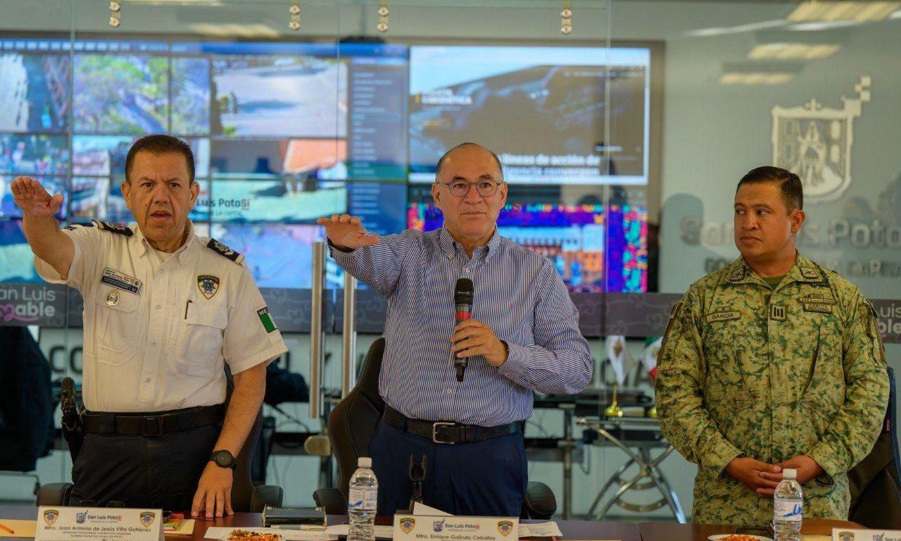 El Consejo Municipal de Seguridad Pública quedó integrado por: Enrique Galindo Ceballos, Presidente Municipal de San Luis Potosí y Presidente del Consejo; Fernando Chávez Méndez, Secretario General del Gobierno Municipal; Víctor Hugo Salgado Delgadillo, Primer Síndico; el Regidor Jorge Alberto Zavala López, Presidente de la Comisión de Policía y Vialidad del Cabildo; Juan Antonio Villa Gutiérrez, Secretario de Seguridad Municipal y Secretario Ejecutivo del Consejo; María Manuela García Cazares, Fiscal General del Estado; Rosalío Ramos García, Encargado de la Guardia Civil Estatal; Jesús Juárez Hernández, Encargado de la Secretaría de Seguridad estatal; Nohemí Proal Huerta, Secretaria Ejecutiva del Consejo Estatal de Seguridad; Margot Montes Sandoval, Directora de Prevención y Reinserción Social; David Silva Cruz, de Justicia Penal para Adolescentes; y el General de Brigada D.E.M. José Felipe Padilla Castañeda, Comandante de la 12ª Zona Militar.