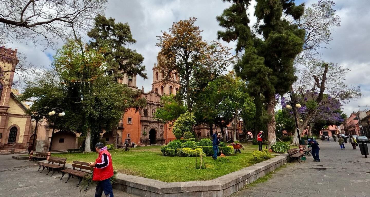 En preparación para la Semana Santa y el Festival Internacional San Luis en Primavera, personal de Servicios Municipales realiza trabajos en la Alameda, Plaza del Carmen, Plaza de Armas y Jardín de San Francisco.