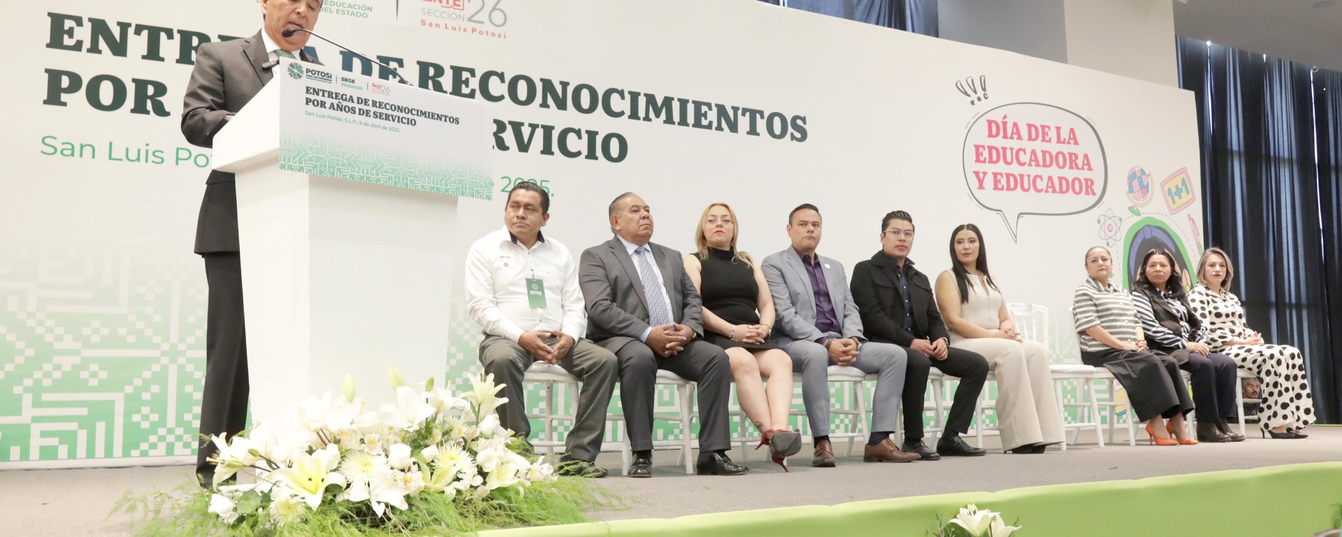 Reconoció el trabajo y convicción que realizan y hacen las educadoras y educadores en San Luis Potosí, y señaló que es merecido el reconocimiento por sus años de servicio al frente de un aula para generar los primeros valores y ética que requerirán las niñas y niños en su desarrollo y crecimiento por el bienestar de la sociedad y el país.