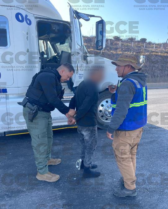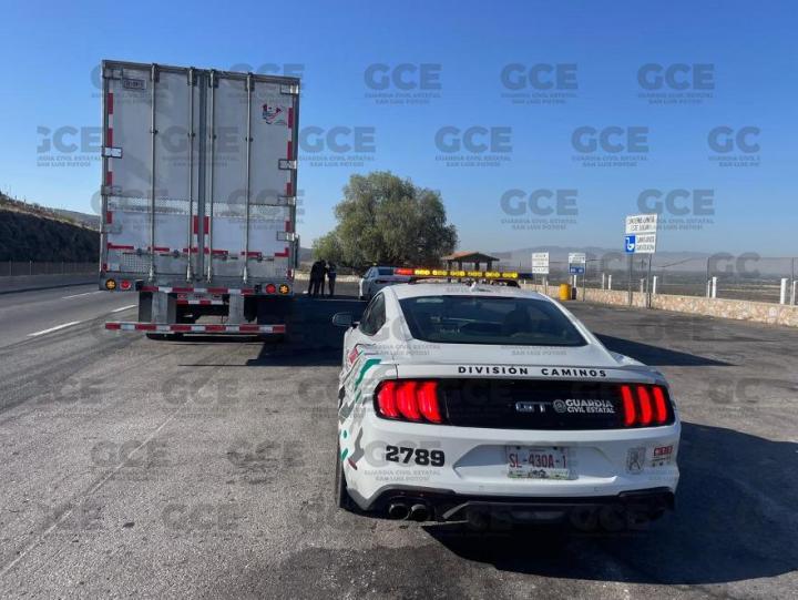 Soledad de Graciano Sánchez, S.L.P.- Agentes de la Guardia Civil Estatal (GCE) adscritos a la División Caminos, efectuaron el rescate de un conductor de un vehículo de carga y aseguraron la unidad que había sido reportada como robada, mediante los operativos en la comunidad de Cándido Navarro.