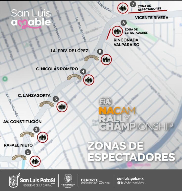 En este punto, se realizará la fase 2, correspondiente a la competencia cronometrada a una vuelta al circuito sobre el Río Españita en el tramo de la calle Rafael Nieto a Humberto Macías. Por ello, la Dirección de Policía Vial habilitará los cierres viales en los distintos accesos al Río Españita y dirigirá la circulación vehicular hacia Azteca Sur, en dirección a la zona centro y norte de la ciudad, en tanto la avenida Salvador Nava Martínez será la ruta alterna para dirigirse al sector sur oriente de la ciudad.