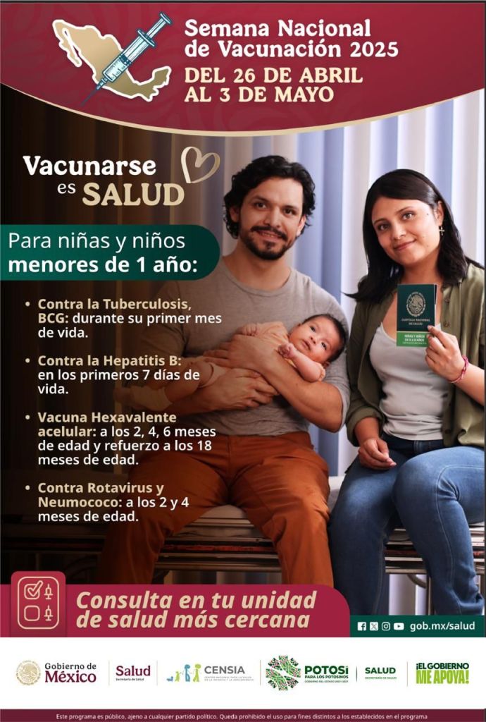 El sector salud en San Luis Potosí participará en la Semana Nacional de Vacunación del 26 al 3 de abril.
