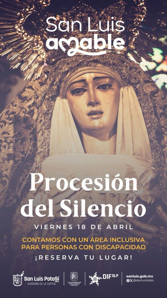 En este San Luis Amable, cada paso hacia la inclusión lo damos con firmeza y sensibilidad, por eso, la Presidenta del DIF Municipal Estela Arriaga Márquez, invita a las personas con discapacidad y un acompañante, a vivir la Procesión del Silencio 2025 desde un espacio diseñado especialmente para que vivan esta experiencia de tradición, respeto y profunda emoción.