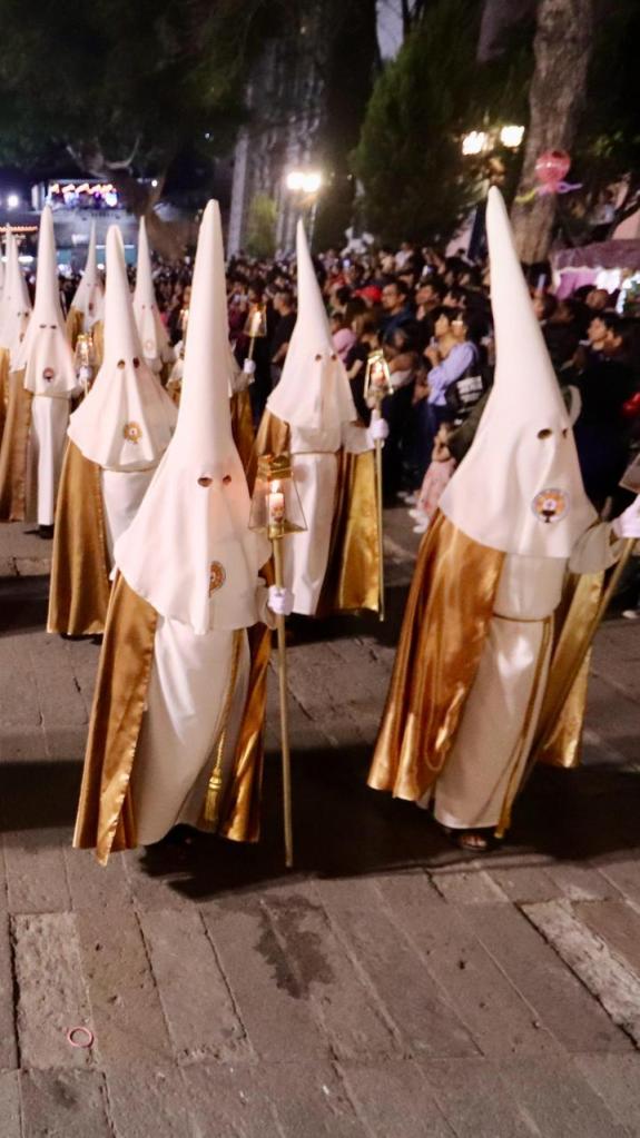 La marcha silente avanzó por las principales calles del Centro Histórico, en medio del respeto de miles de asistentes que acompañaron el trayecto con devoción. El retumbar de los tambores y el lamento de las trompetas guiaron a las cofradías en una noche llena de simbolismo, que reafirma a San Luis Capital como un referente nacional de tradición y espiritualidad.