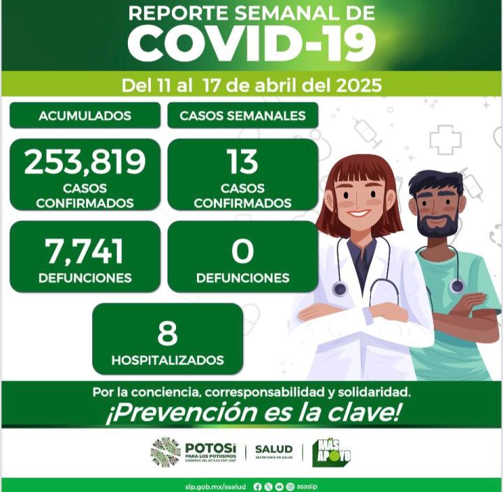 En el Estado, del 11 al 17 de abril fueron confirmados 13 nuevos contagios de Covid-19, el Comité Estatal para la Seguridad en Salud y los Servicios de Salud dieron a conocer que hay 253 mil 819 casos totales de este padecimiento.
