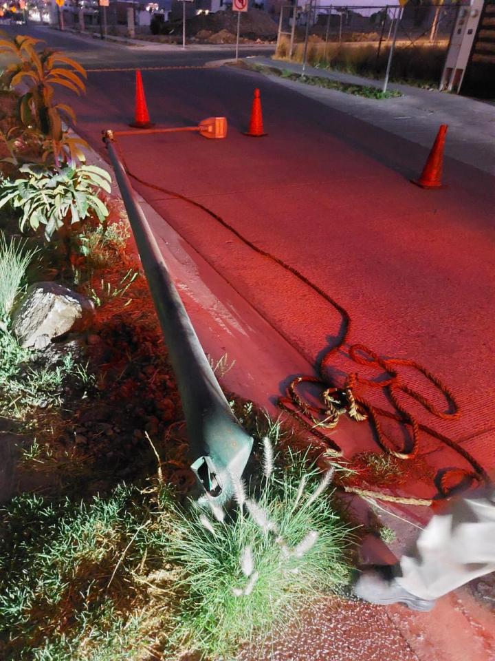 Atendiendo un llamado de auxilio de vecinos, se retiró un poste que se dañó severamente luego de un impacto por accidente de auto, mismo que generaba un alto riego para la seguridad de las personas.