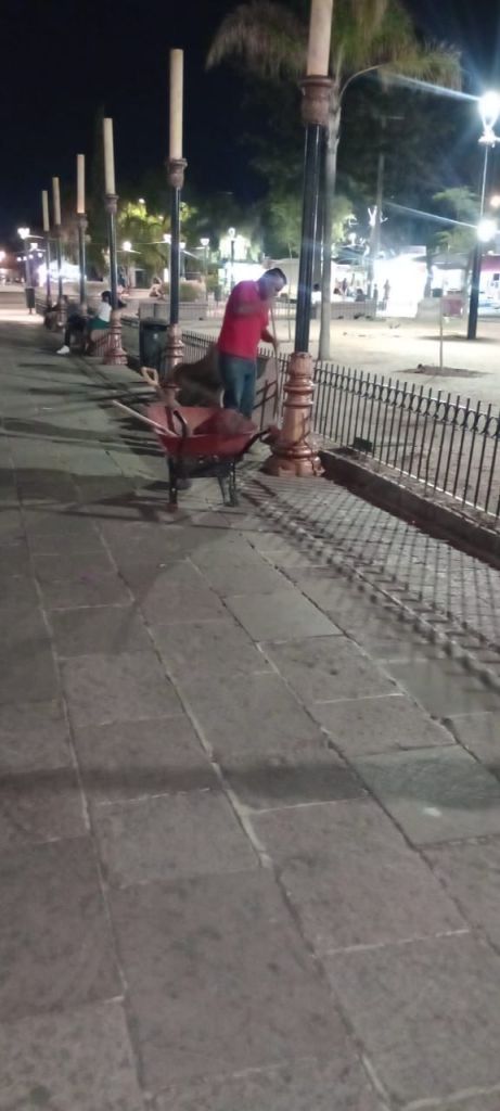 El operativo nocturno incluyó el barrido manual, retiro de residuos sólidos, así como el hidrolavado de superficies con maquinaria especializada, con el objetivo de mejorar la imagen urbana y garantizar espacios públicos limpios y seguros.
