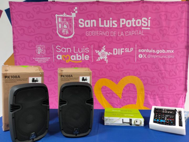 SLP.- La Presidenta de la Fundación Saya, Yamel Campos, entregó equipo de sonido profesional, destinado a fortalecer las terapias que se brindan en la cámara multisensorial de la Unidad Básica de Rehabilitación Maravillas, del Sistema Municipal DIF.