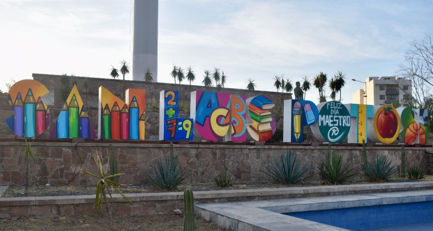 La Dirección de Servicios Municipales del Ayuntamiento de San Luis Potosí realizó la renovación del colorido de las letras monumentales ubicadas en el asta bandera, como un homenaje visual a las y los maestros, en el marco del Día del Maestro que se celebra el próximo 15 de mayo.